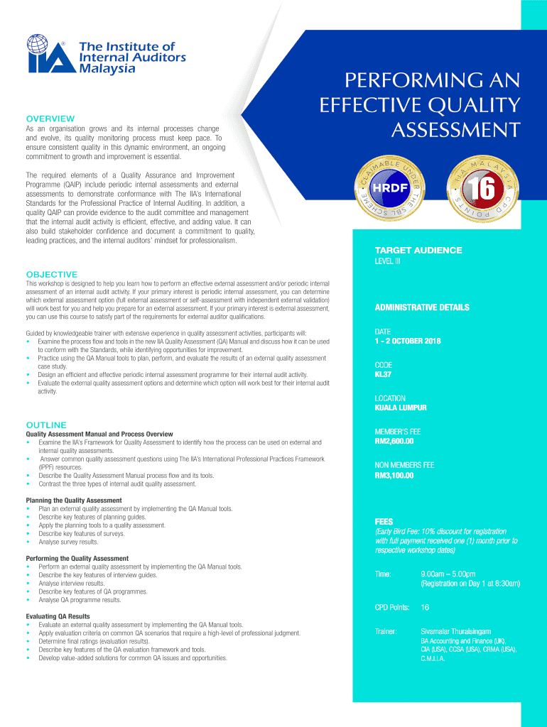 Performing an effective quality is needed by organizations and individuals who strive for excellence in their products or services.