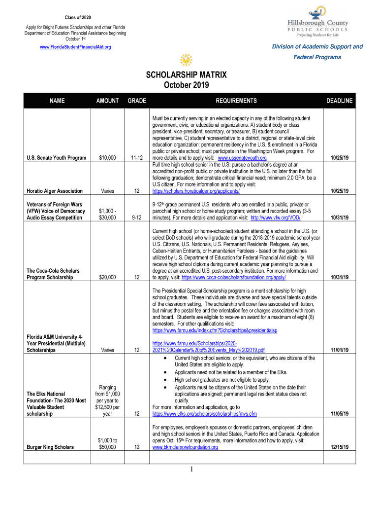 Get the free SCHOLARSHIP MATRIX 806 - Guidance Services