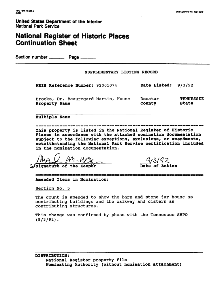 NPS Form 10800×Q /)PW/ f024United States Department of the Interior National Park ServiceNational Register of Historic Places Continuation Sheet Section number Page SUPPLEMENTARY LISTING RECORDERS