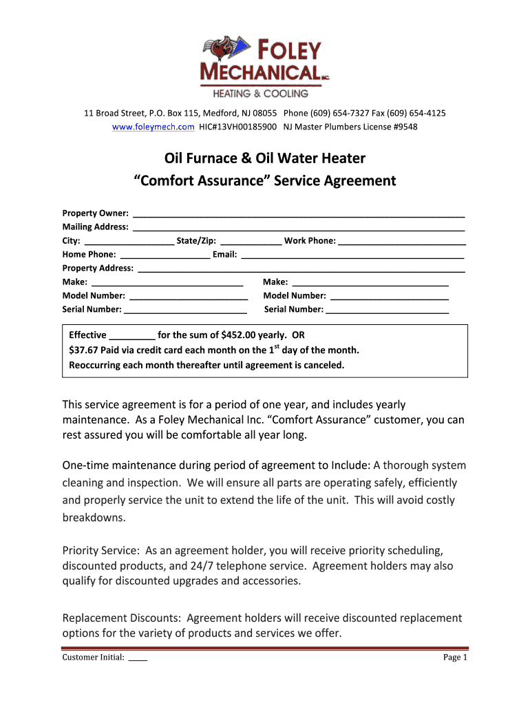 Get the free ServiceAgreementOilFurnace&OilWaterHeater.doc