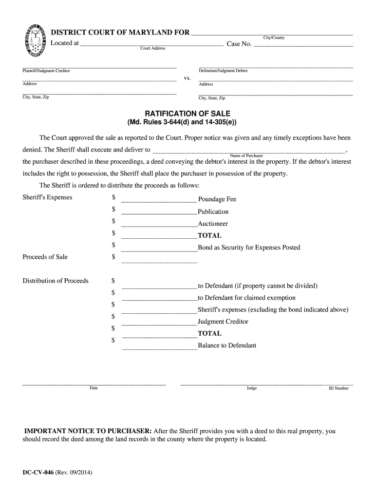 Get the free district court of maryland for ratification of sale - Maryland Courts