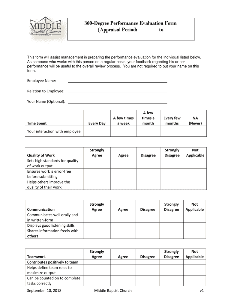360Degree Performance Evaluation Form to (Appraisal Period:This form will assist management in preparing the performance evaluation for the individual listed below. As someone who works with this