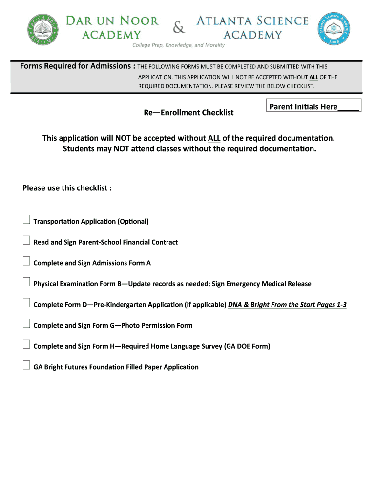 Get the free New Enrollment hecklist This application will NOT be ...