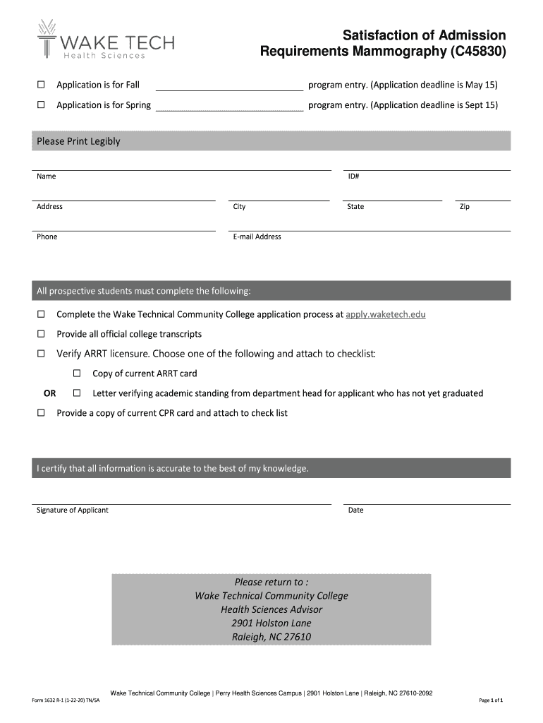 Get the free Satisfaction of Admission Requirements Mammography (C45830)
