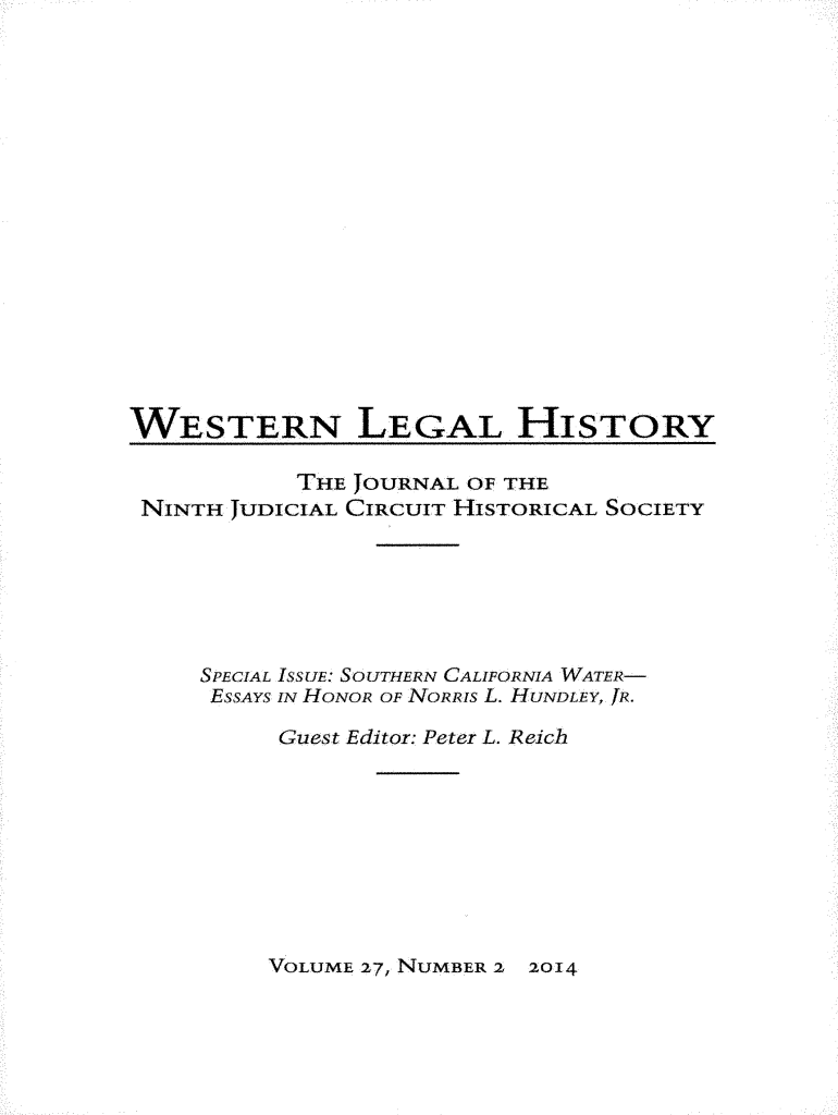 This document contains multiple articles and reviews related to legal history, focusing on the evolution of law, water rights, and public legal proceedings in the American West, particularly surrounding