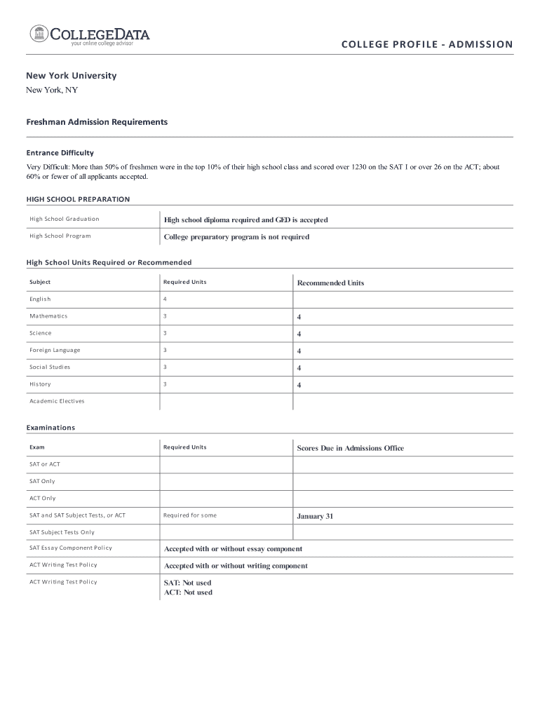 Get the free New York University - Admission Requirements, SAT, ACT ...