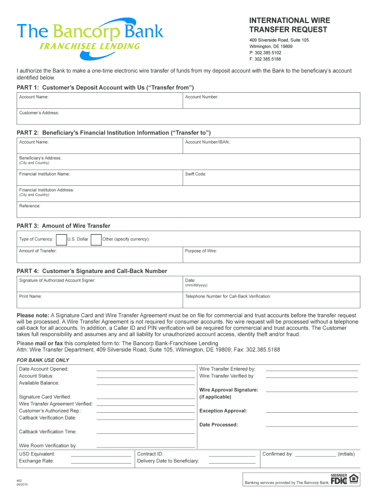Any customer with a valid deposit account at a financial institution can use the International Wire Transfer Request form to authorize wire transfers.