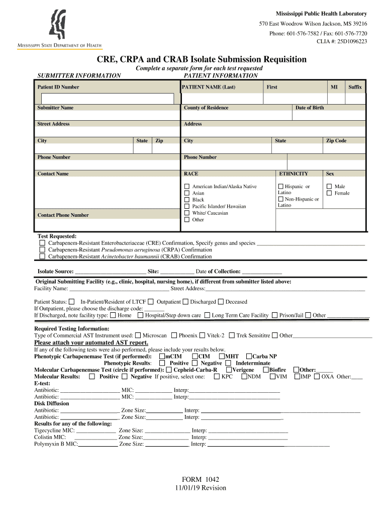 CIA #: 25D1096223CRE, CPA and CRAB Isolate Submission Requisition