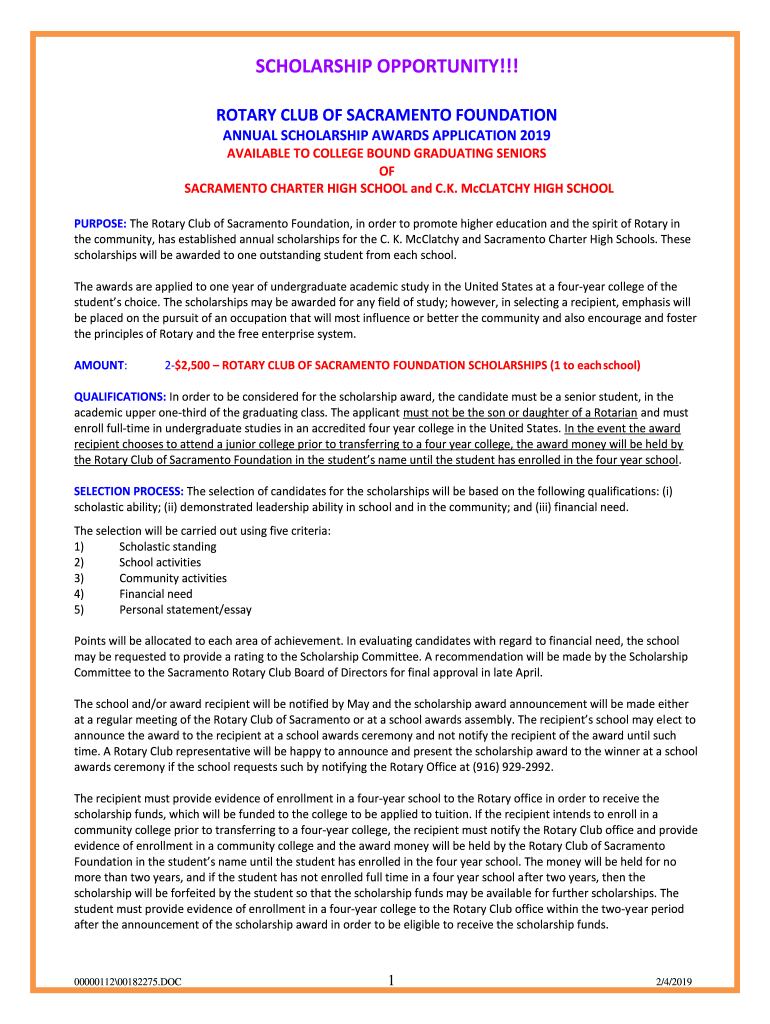 Get the free Rotary Club of Sacramento Foundation Scholarship Application