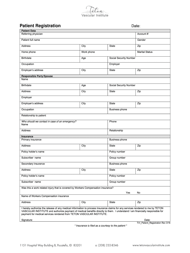 A patient registration form is a document that collects essential personal and medical information from patients before they receive healthcare services.