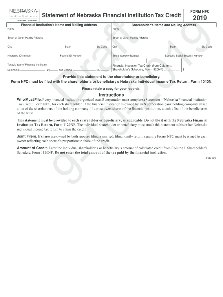 Get the free Form NFC "Statement of Nebraska Financial Institution Tax ...