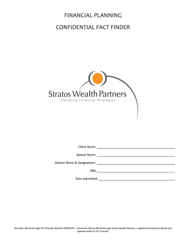 FINANCIAL PLANNING CONFIDENTIAL FACT FINDERClient Name: Spouse Name: Advisor Name & Designations: DBA: Date Submitted: Securities offered through LPL Financial, Member FINRA/SIPC. Investment Advice
