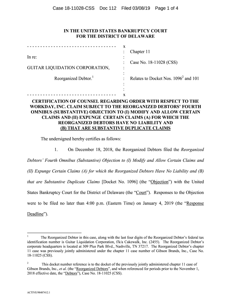 Case 1811028CSSDoc 112Filed 03/08/19Page 1 of 4IN THE UNITED STATES BANKRUPTCY COURT
