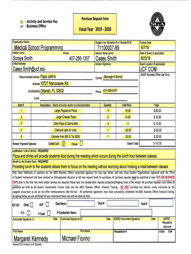 , Purchase Request Reactivity and Service Fee Business OfficeIJCFFiscal Year 2019 2020Organization Paramedical School ProaramminaInitiator (print)Soraya SmithBudget Line, Allocation#, or Senate Bill#