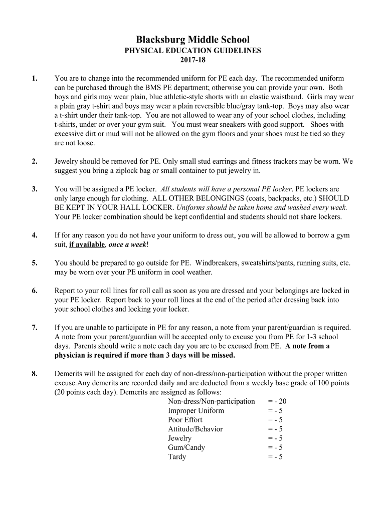 1. You are to change into the recommended uniform for PE each day. The recommended uniform