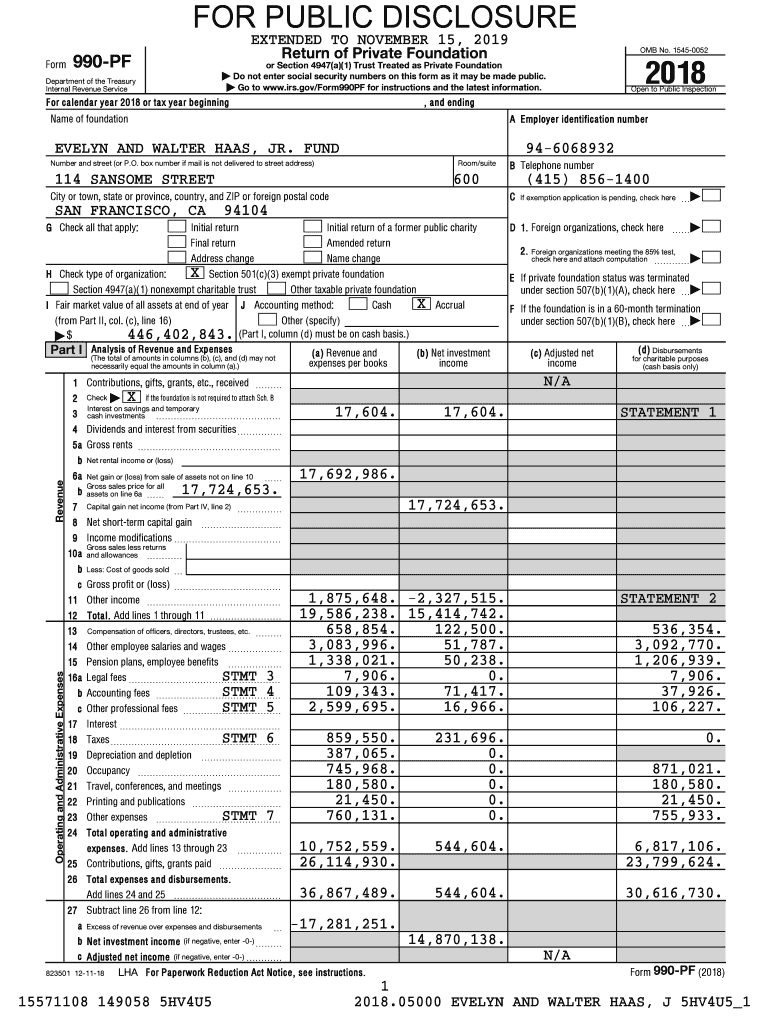 Get the free 2018 FOR PUBLIC DISCLOSURE - Evelyn & Walter Haas, Jr ...