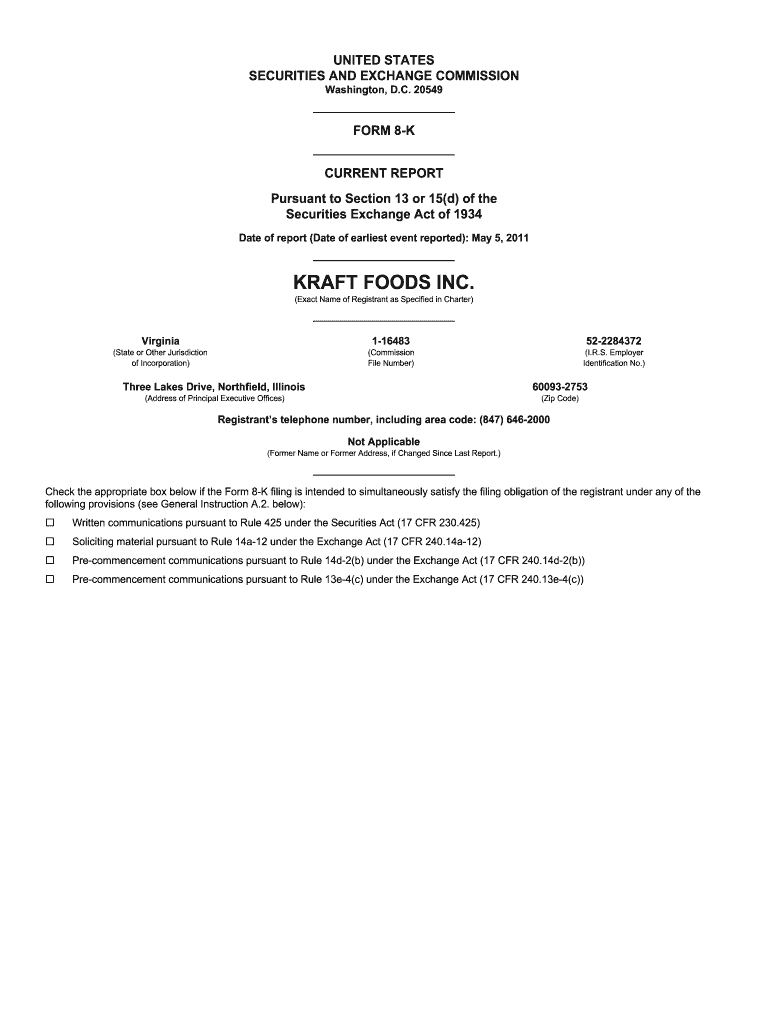 Kraft Foods Inc is not the form you're looking for?Search for another form here.