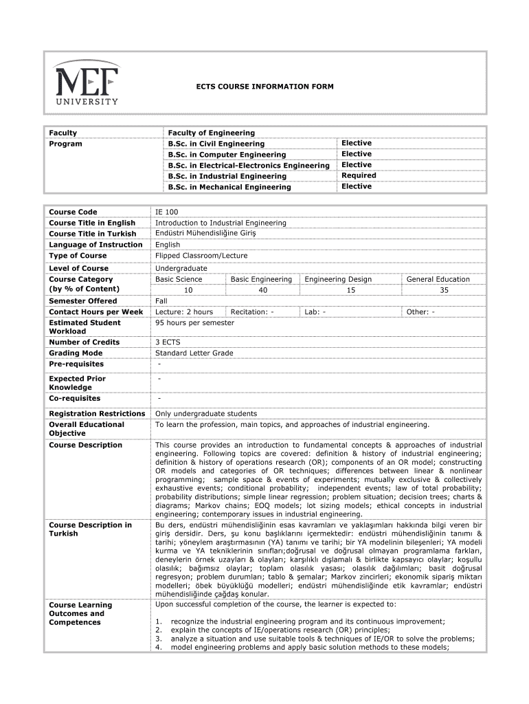 ECTS COURSE INFORMATION FORMFacultyFaculty of EngineeringProgramB. Sc. in Civil EngineeringElectiveB. Sc. in Computer EngineeringElectiveB. Sc. in ElectricalElectronics EngineeringElectiveB. Sc. in