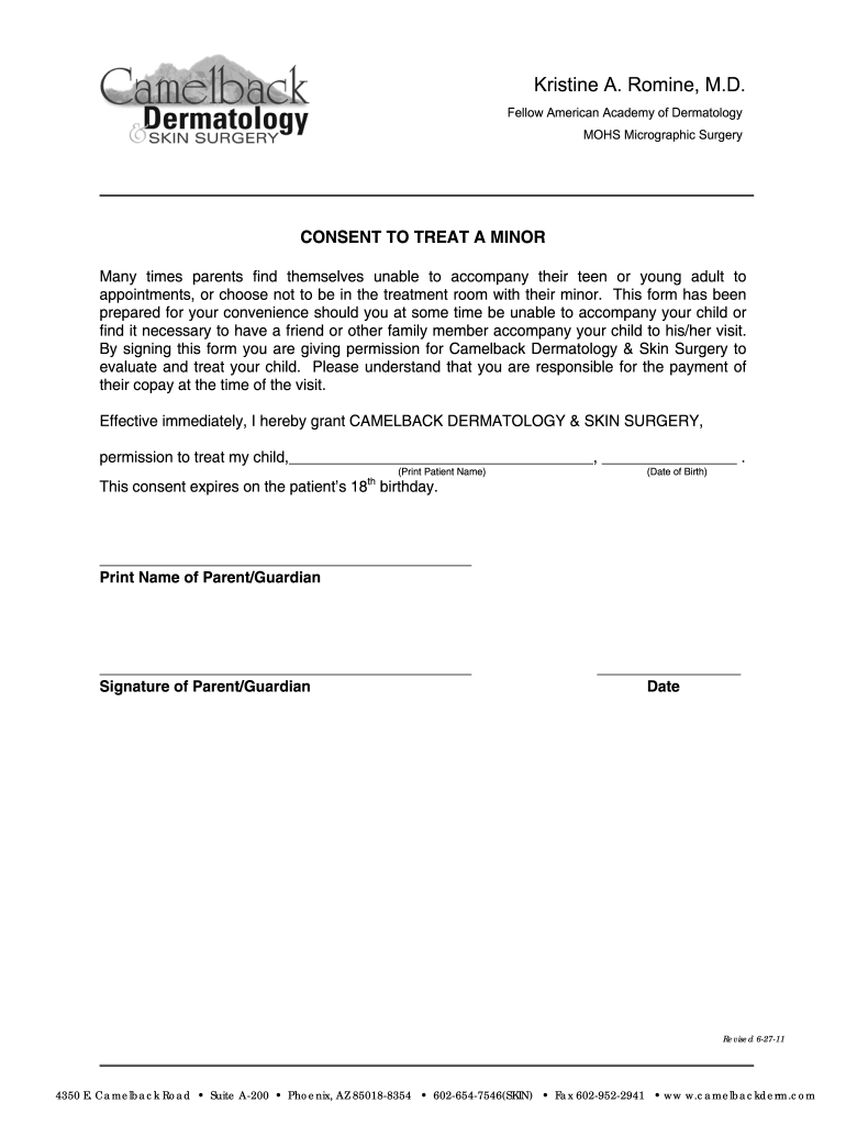 MOSS Micrographic SurgeryCONSENT TO TREAT A MINOR