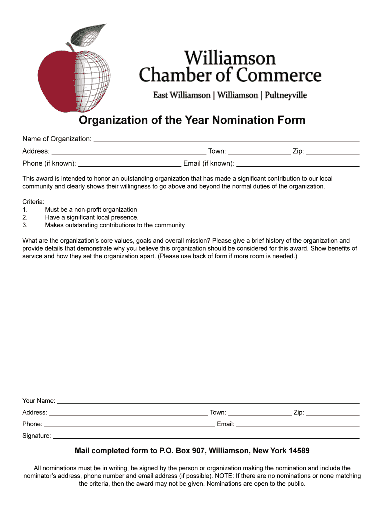 Name of Organization:Address:Town:Phone (if known):Zip:Email (if known):This award is intended to honor an outstanding organization that has made a significant