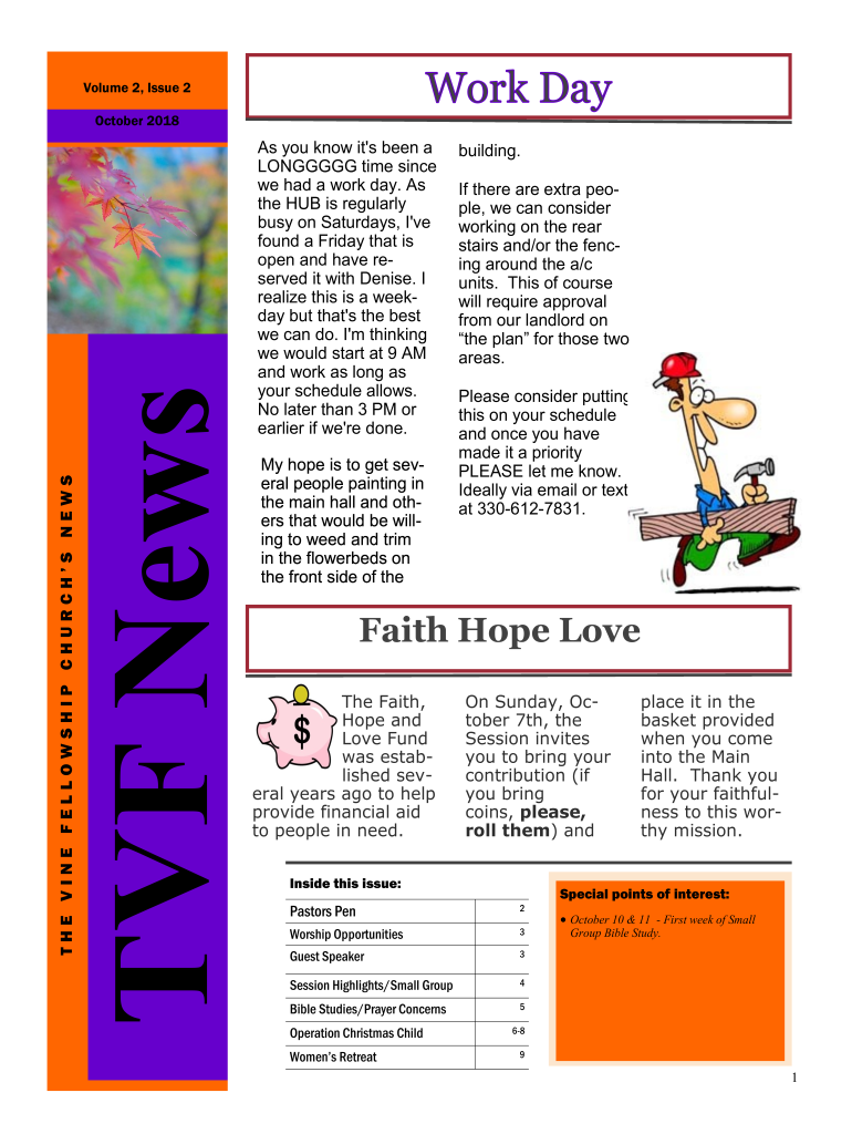 Volume 2, Issue 2TVF Noose VINE FELLOWSHIP CHURCH NEWS October 2018As you know it\'s been a
