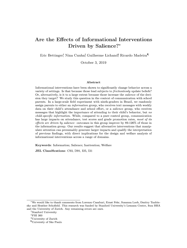 Get the free Are the Effects of Informational Interventions Driven by Salience?
