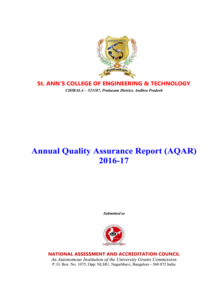 CHIRAL 523187, Prakash District, Andhra PradeshAnnual Quality Assurance Report (AGAR)