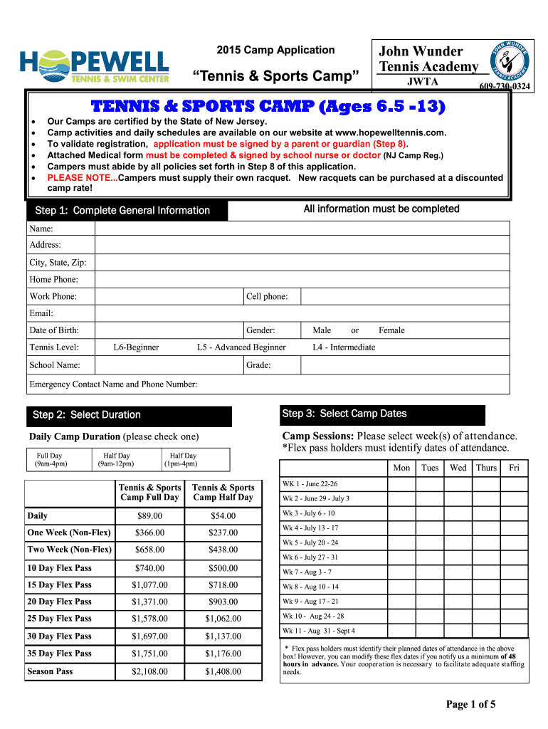 Obtain the registration form from the Hopewell Tennis and Swim office.