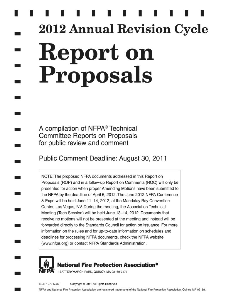 2012 Annual Revision CycleReport on Proposals A compilation of NFPA Technical Committee Reports on Proposals for public review and comment Public Comment Deadline: August 30, 2011, NOTE: The proposed