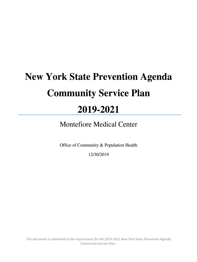 New York State Prevention Agenda Community Service Plan 20192021 Montessori Medical Center Office of Community & Population Health 12/30/2019This document is submitted as the requirement for the 20192021