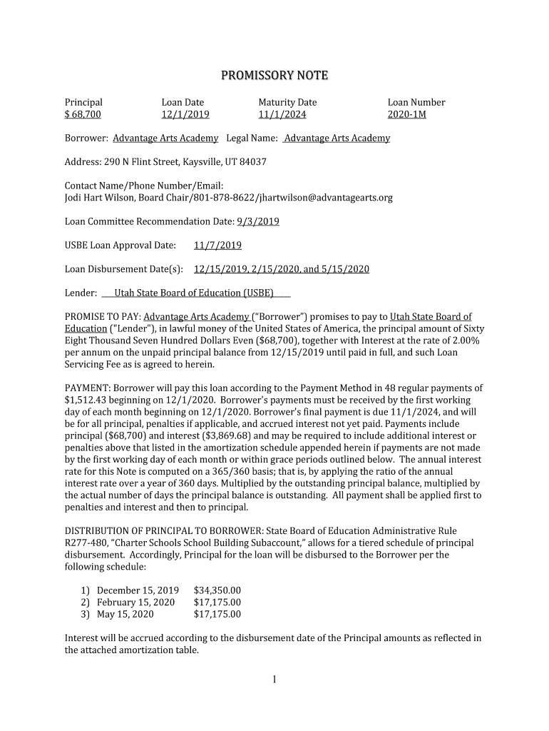 20201MBorrower: Advantage Arts Academy Legal Name: Advantage Arts Academy