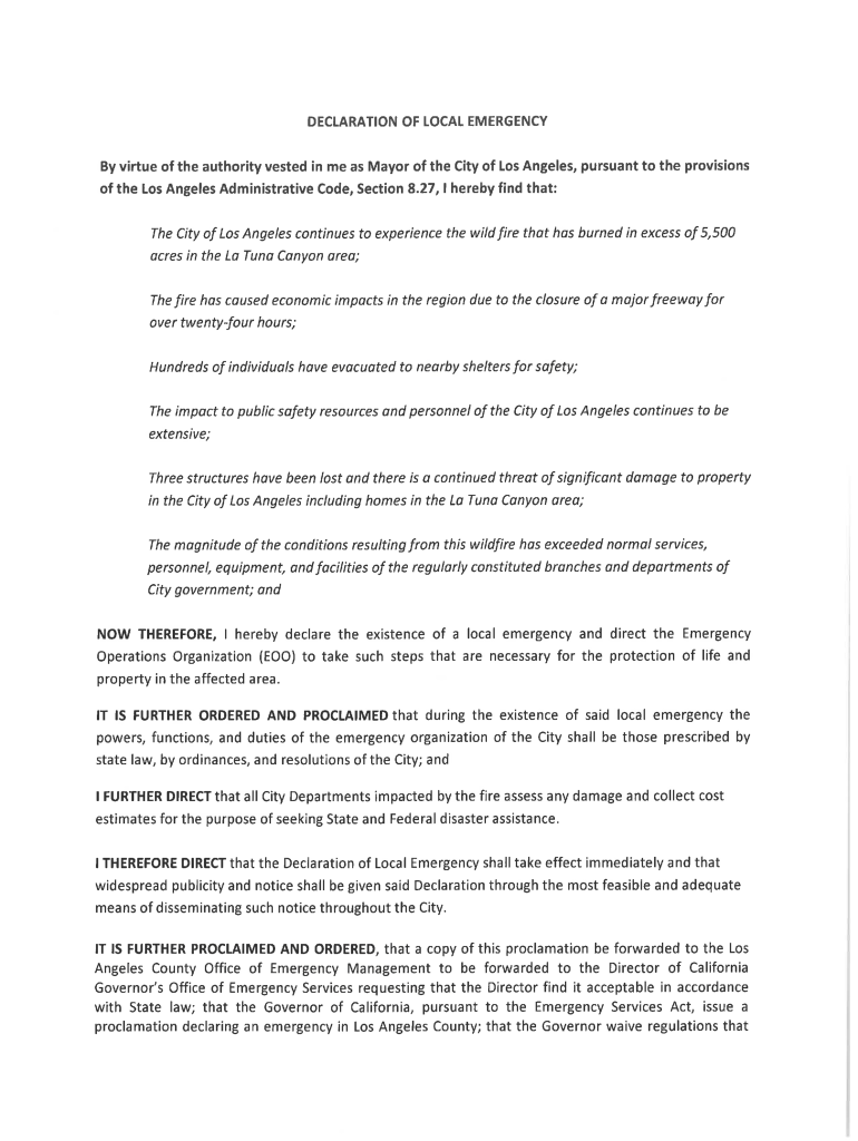 Get the free Fire Moves to Granada Hills, Mayor Declares Local Emergency
