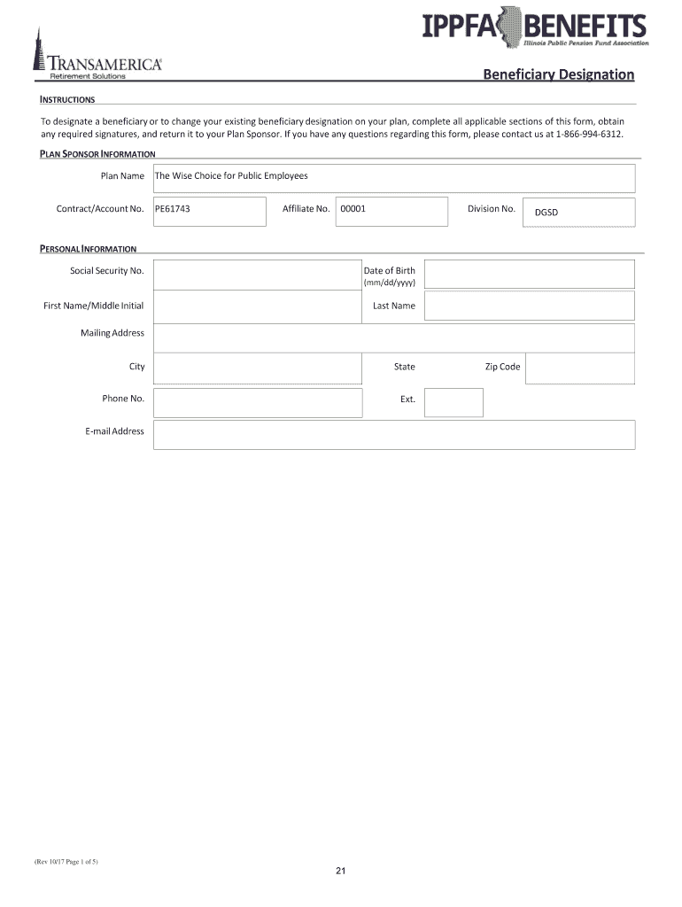 To designate a beneficiary or to change your existing beneficiary designation on your plan, complete all applicable sections of this form, obtain