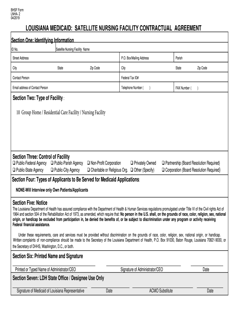 04/2019LOUISIANA MEDICAID: SATELLITE NURSING FACILITY CONTRACTUAL AGREEMENT