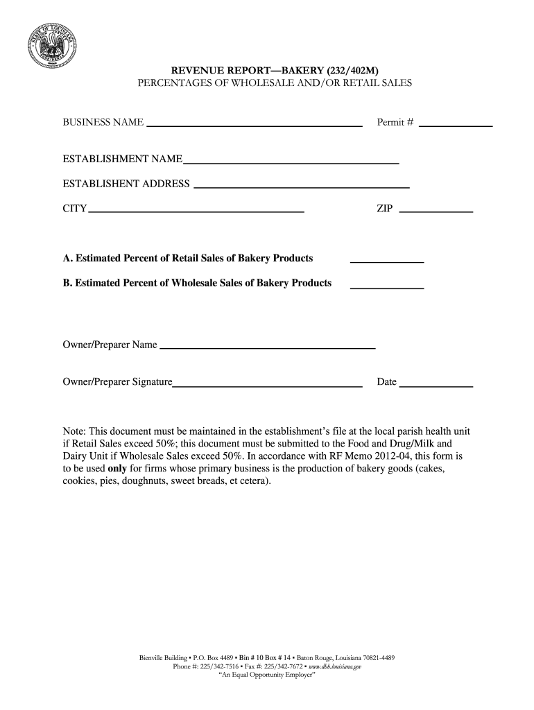 PERCENTAGES OF WHOLESALE AND/OR RETAIL SALESBUSINESS NAMEPermit #ESTABLISHMENT NAME