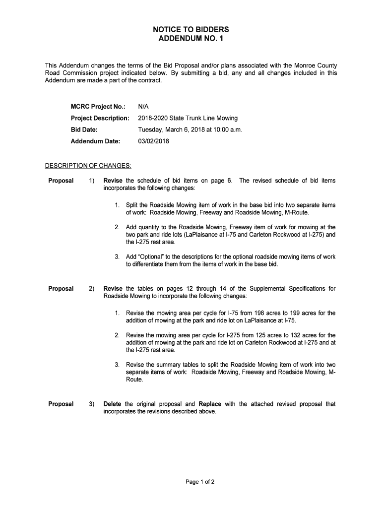 Get the free notice to bidders addendum no. 1 - Monroe County Road ...