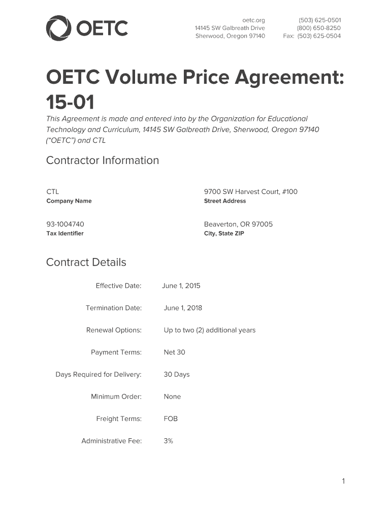 Get the free OETC Volume Price Agreement: 15-01