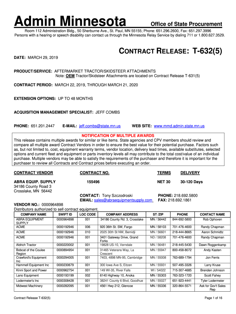 Admin MinnesotaOffice of State ProcurementRoom 112 Administration Bldg., 50 Hepburn Ave., St. Paul, MN 55155; Phone: 651.296.2600, Fax: 651.297.3996