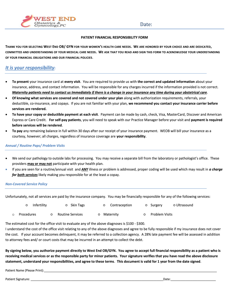 PATIENT FINANCIAL RESPONSIBILITY FORM