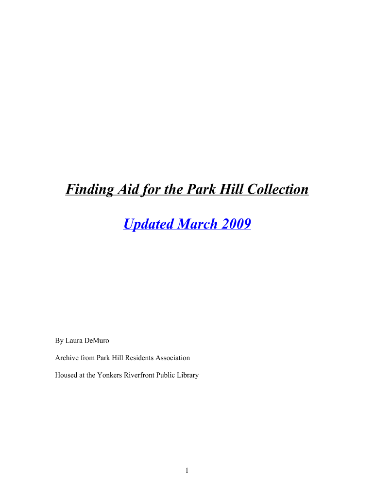 Housed at the Yonkers Riverfront Public Library1Table of Contents