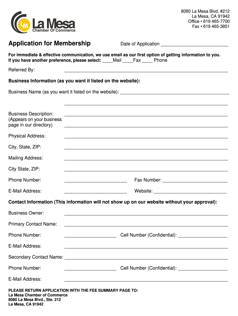 8080 La Mesa Blvd. #212 La Mesa, CA 91942 Office 619 4657700 Fax 619 4653851Application for MembershipDate of Application For immediate & effective communication, we use email as our first option