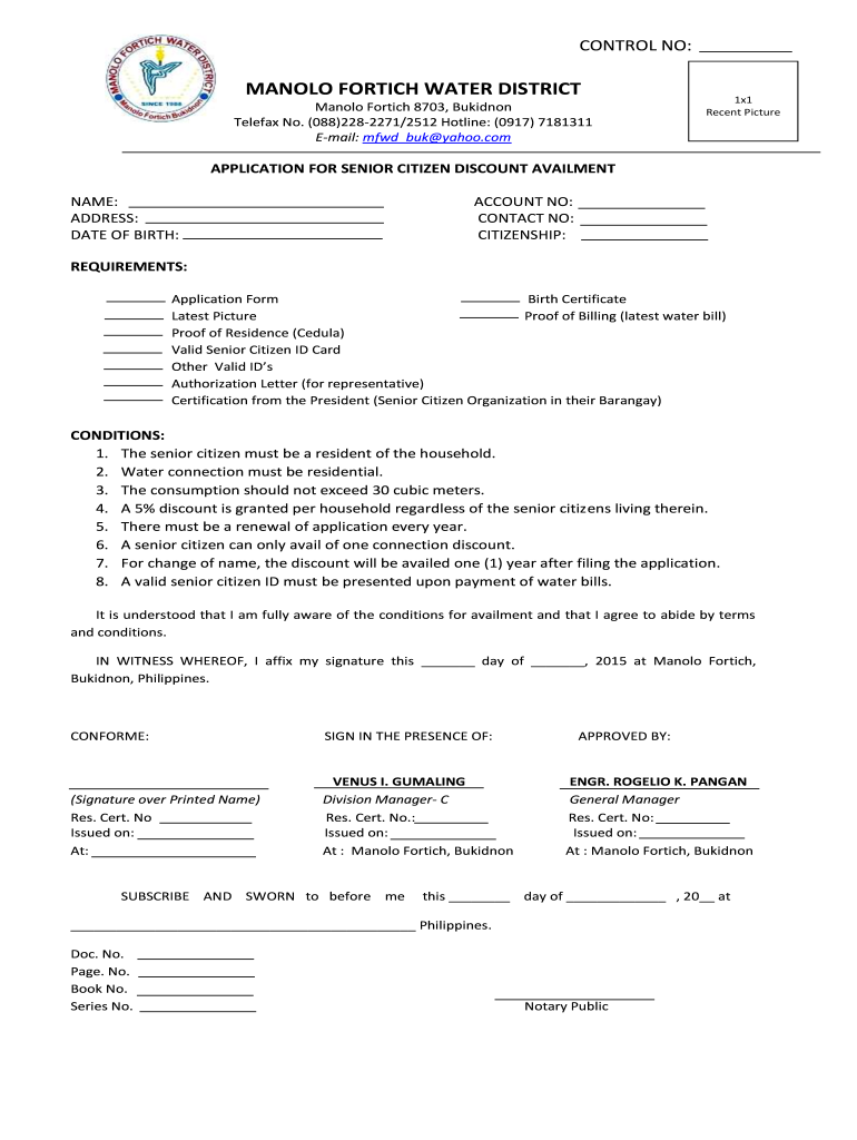 Recent PictureAPPLICATION FOR SENIOR CITIZEN DISCOUNT