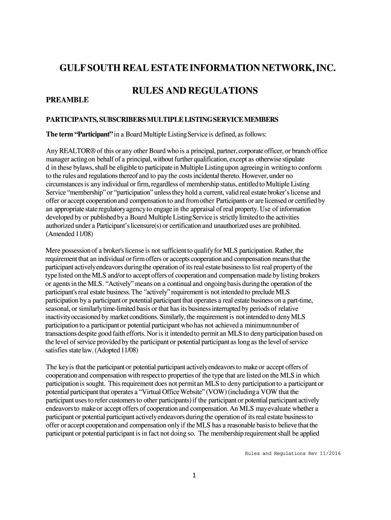PARTICIPANTS, SUBSCRIBERS MULTIPLE LISTING SERVICE MEMBERS