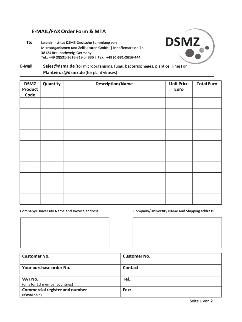 To:LeibnizInstitut DSMZDeutsche Sampling on