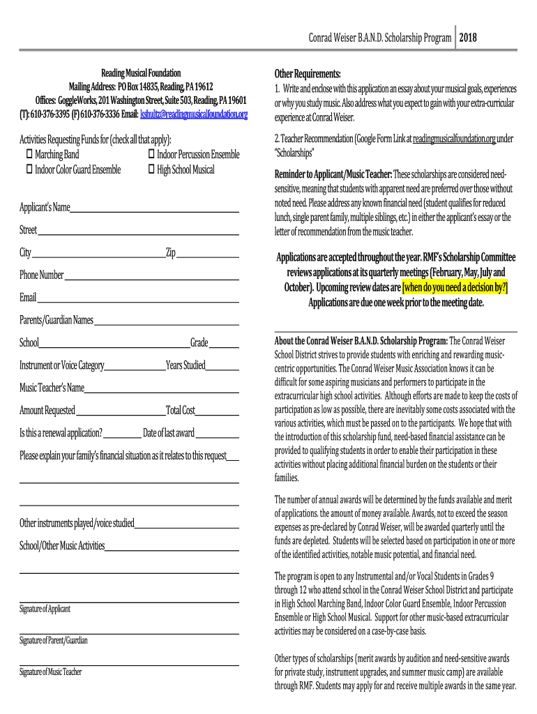 To fill out the Reading Musical Foundation information, gather necessary details about your music programs, funding sources, and participants, and complete the prescribed forms provided by the foundation.