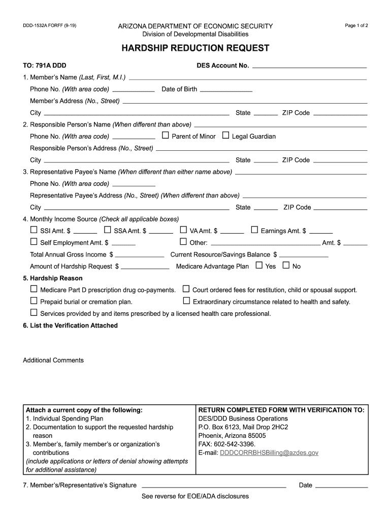 Individuals or entities facing significant financial hardships that impede their ability to meet certain obligations are required to file the ddd-1532a-hardship reduction request hardship.