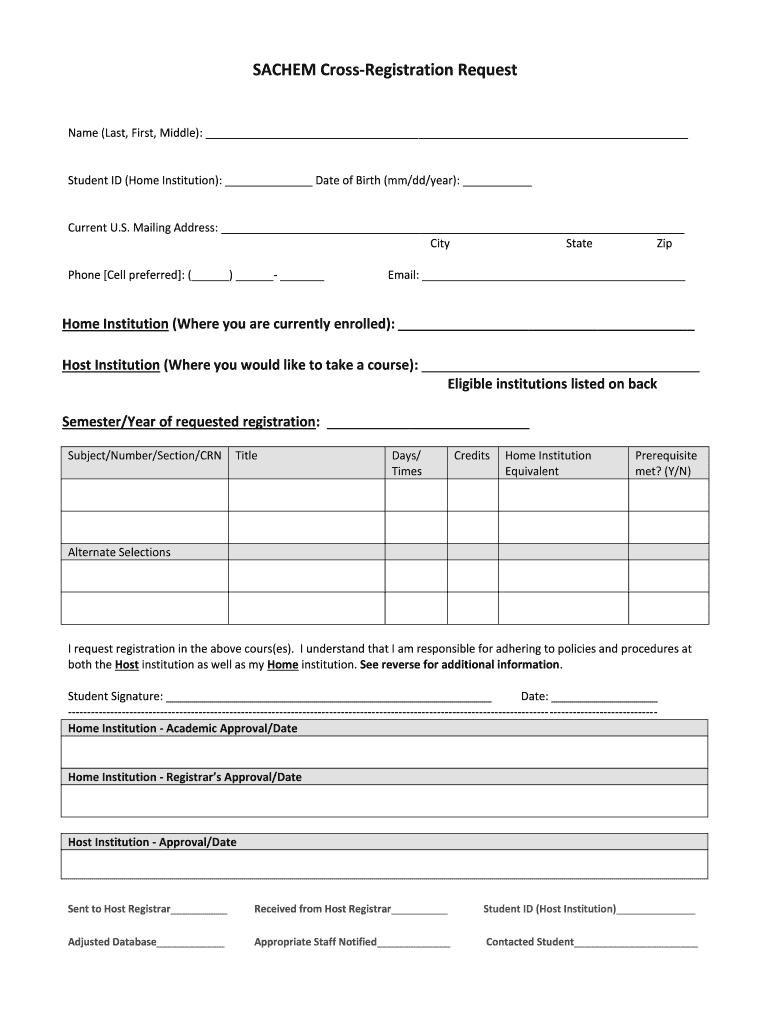 Get, Create, Make and Sign sachem cross-registration request