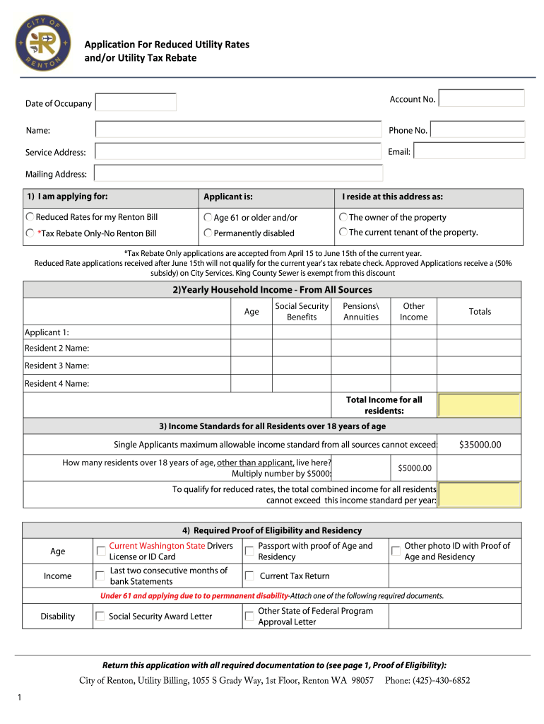 and/or Utility Tax Rebate Date of OccupanyAccount No. Name:Phone No. Service Address:Email:Mailing Address: