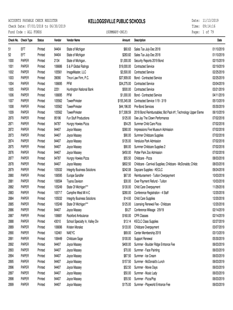 Check Date: 07/01/2018 to 06/30/2019