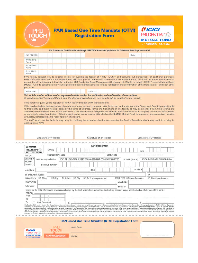 IPRU Touch - OTM is needed by individuals or organizations who want to fill out One Time Mandate forms for insurance policies with IPRU (ICICI Prudential Life Insurance) company.
